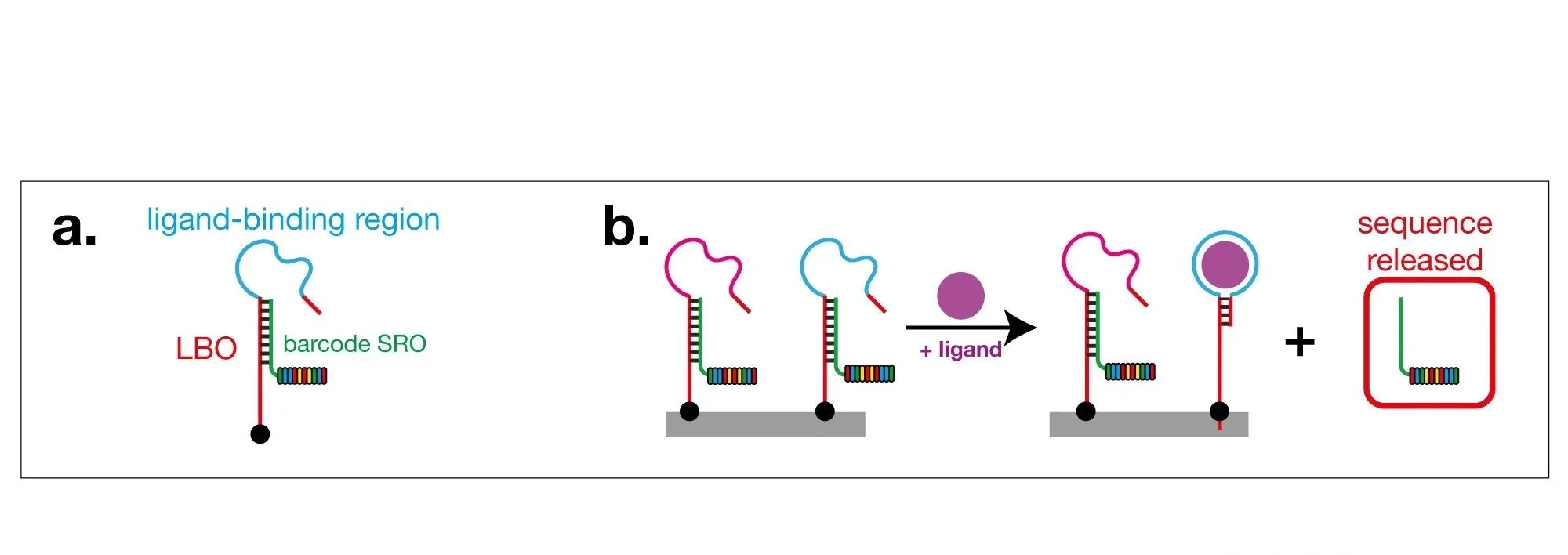 Our current research focuses on harnessing the incredible power of DNA sequencing to revolutionise the detection and measurement of metabolites and drugs. We recently developed a method that uses DNA sequencing to read metabolite and drug concentrations. This method, that we call smol-seq (for Small MOLecule sequencing), uses structure-switching aptamers (SSAs) as sensors to detect individual targets. Each SSA detects a single target and is coupled to a unique DNA barcode — when the target binds, this causes the release of the barcode e.g. a glucose SSA ‘sees’ glucose and releases a ‘glucose’ barcode and an SSA that ‘sees’ phenylalanine releases a different ‘phenylalanine’ barcode. Simply by reading and quantifying the released barcoded SROs, it is thus possible to quantify the metabolites in a complex mixture.